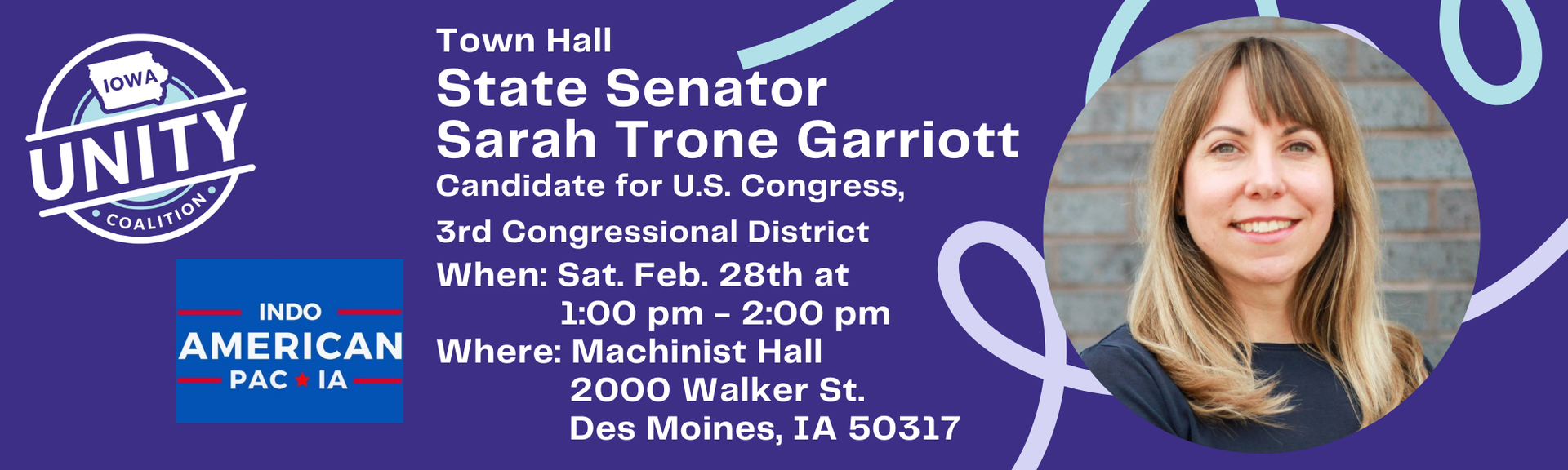 Appetizers & beverages will be available throughout the event. For additional information, please contact Mitch Henry, Chair of the Iowa Unity Coalition, at (515) 865-4084 or email mitchhenry1957@gmail.com .